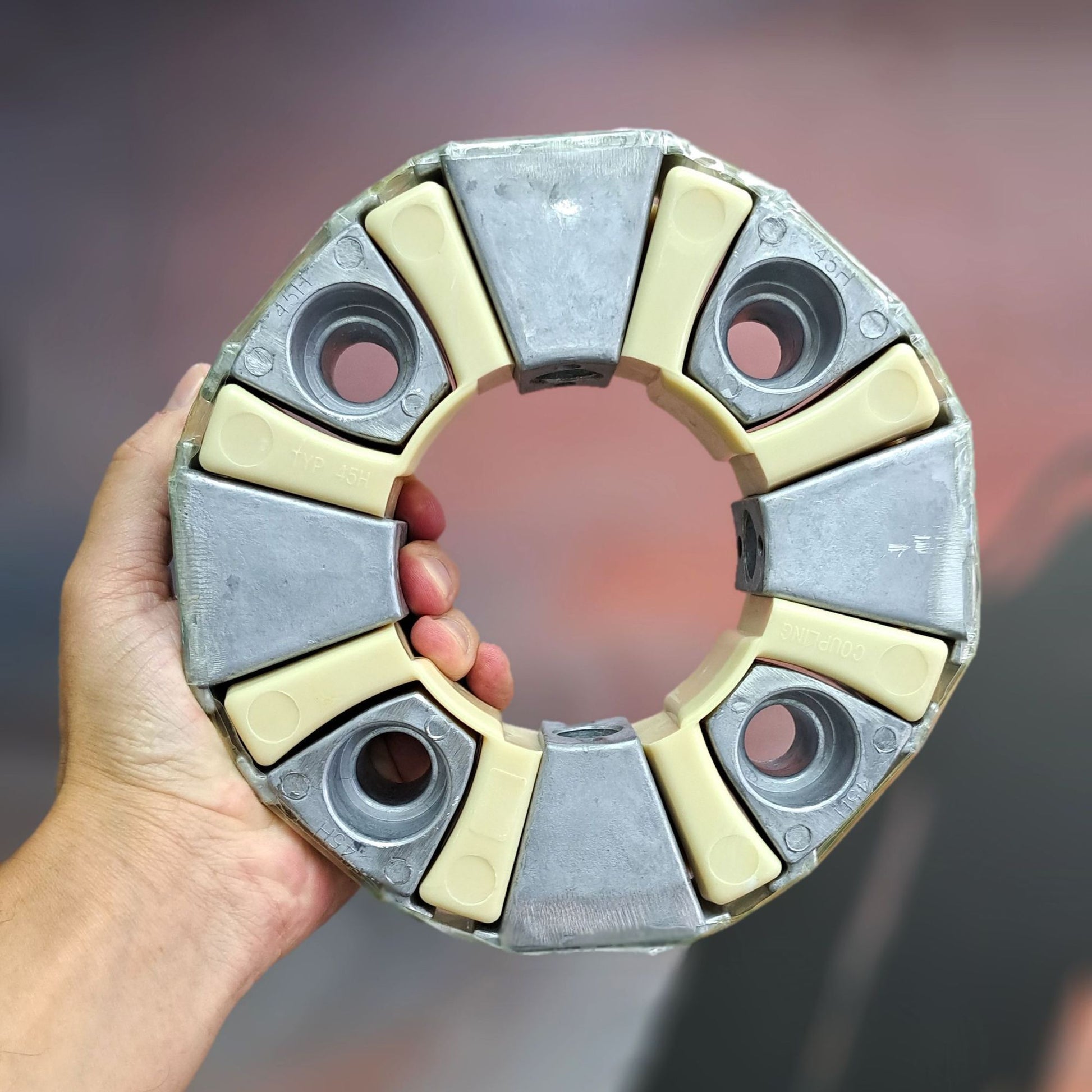 Acoplamento 45H para bomba hidráulica de escavadeira. Peça fundamental para a transmissão de força entre o motor e a bomba hidráulica, garantindo eficiência, durabilidade e funcionamento seguro da máquina. Fabricado com material de alta resistência, ideal para reposição e manutenção de escavadeiras e equipamentos de linha pesada.