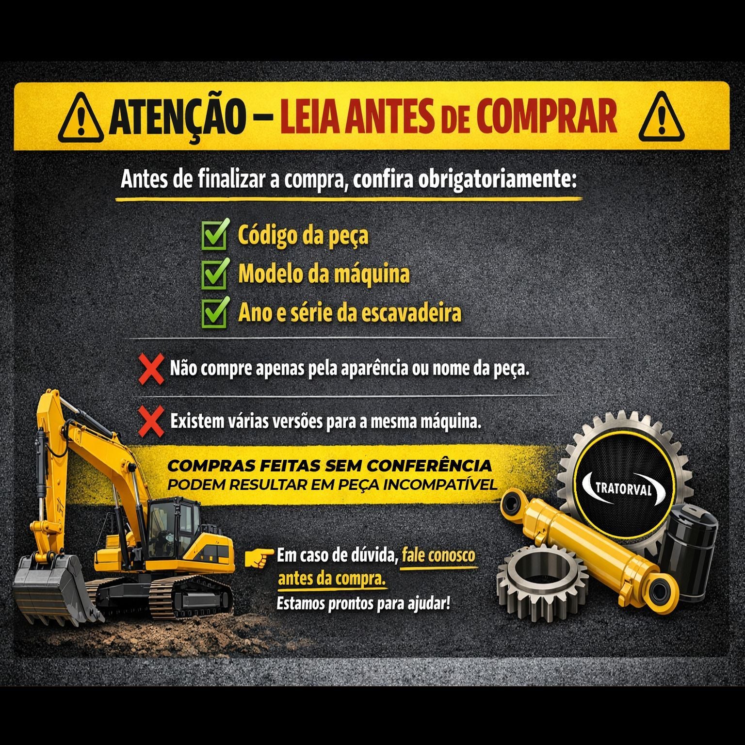 Atuando a mais de 26 anos no mercado, a Tratorval oferece um atendimento exclusivo e personalizado pelo nosso time de consultores altamente treinados e qualificados para auxiliar em sua compra ou até mesmo na parte técnica do seu equipamento.